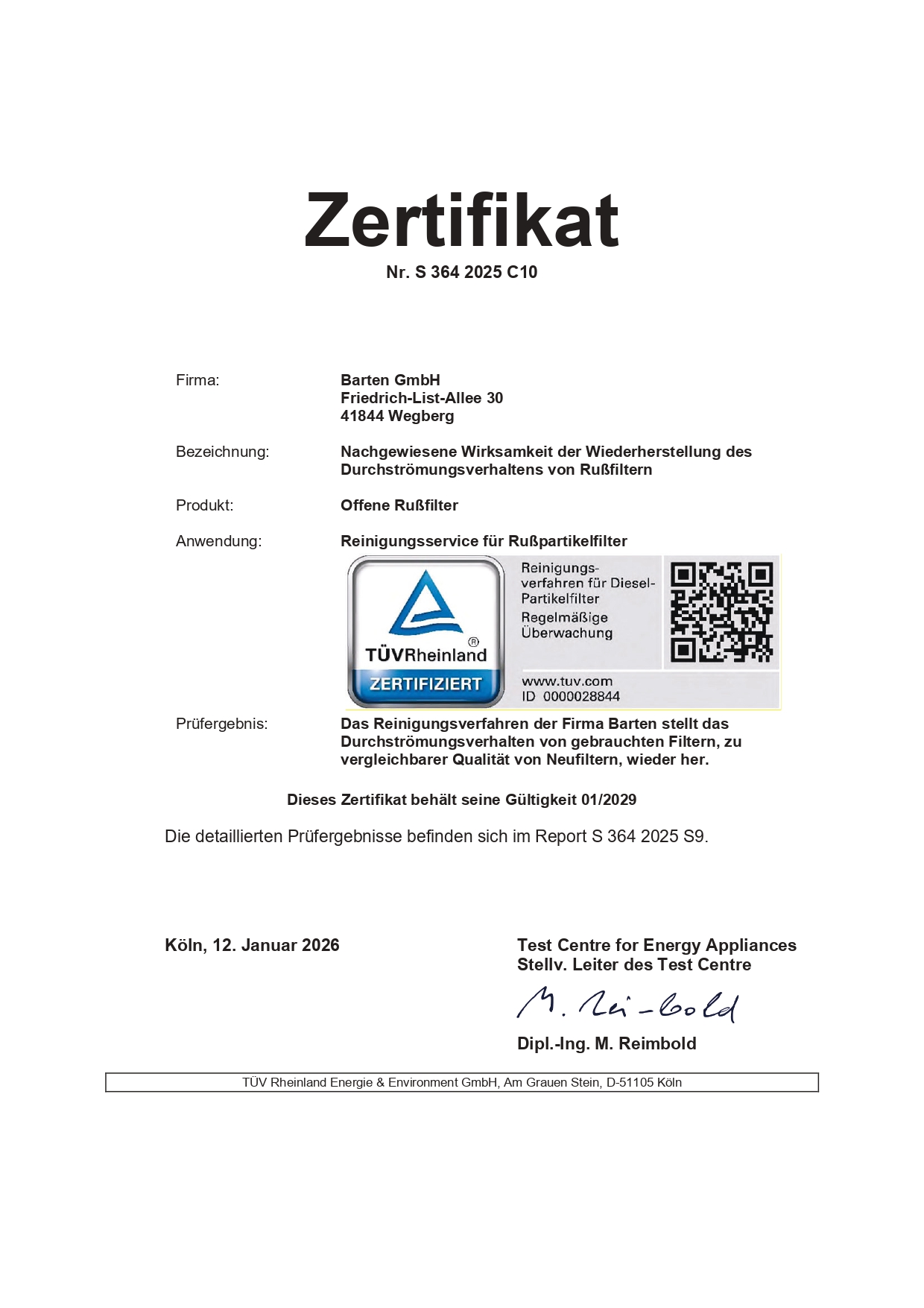 Die Wirksamkeit unseres Reinigungsverfahrens wird regelmäßig vom TÜV Rheinland überprüft und zertifiziert.